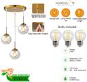 HomesElite 3 Way Brass Electroplated Fittings with Glass Globe Hanging Light(Bulb Included) Pendant Lamp Ceiling Lamp (Gold)