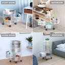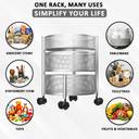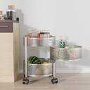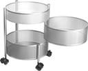 HOMESTIC 2+1 Layer Kitchen Metal Storage Rack with Wheels | Round Shape - Silver Iron Kitchen Trolley (Pre-assembled)