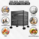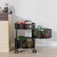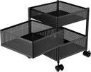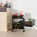 HOMESTIC 2+1 Layer Kitchen Metal Storage Rack with Wheels | Square Shape - Black Iron Kitchen Trolley (Pre-assembled)