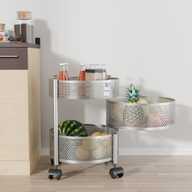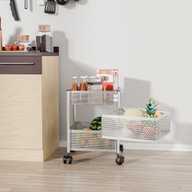 HOMESTIC 2+1 Layer Kitchen Metal Storage Rack with Wheels | Square Shape - Silver Iron Kitchen Trolley (Pre-assembled)