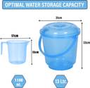 HOMESTIC Bucket & Mug Bathroom Combo Set|Set of 2|Transparent Blue 13 L Plastic Bucket (Blue)