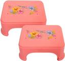 HOMESTIC Floral Print 2 Pieces Plastic Bathroom Stool for Home, Office|Pink Stool (Pink, Pre-assembled)