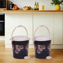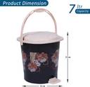 HOMESTIC by Kuber Industries Floral Print Plastic Pedal Dustbin With Handle,7 Litre,Pack of 2 (Black) Plastic Dustbin (Black, Pack of 2)