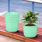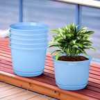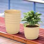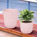 HOMESTIC by Kuber Industries Marble Sawera Flower Pot for Home & Garden with Tray|10 Inch|Pack of 6|White Plant Container Set (Pack of 6, Plastic)
