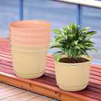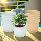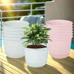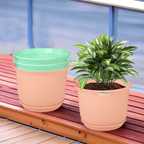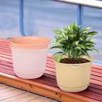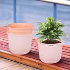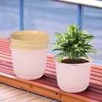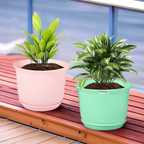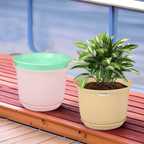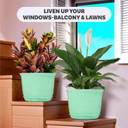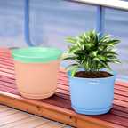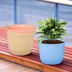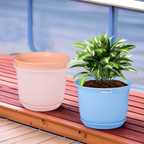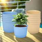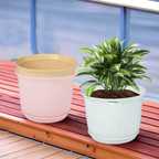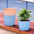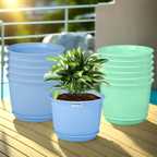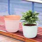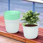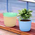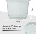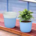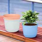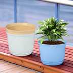 HOMESTIC by Kuber Industries Marble Sawera Flower Pot for Home with Tray|10 Inch|Packof 3|Blue-White & Green Plant Container Set (Pack of 3, Plastic)
