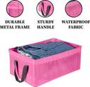 PACKAGE CONTAINS : 1 Piece Storage Box | MATERIAL : Parachute ( Frame-Stainless Steel ) | PRODUCT DIMENSION : 46 cm x 31 cm x 20 cm,DURABLE METAL FRAME & OPEN DESIGN : The Metal frame, which is made of strong materials, guarantees stability and long-lasting durability, giving your stored things dependable support. In the meanwhile, the open design makes it simple to stack and retrieve items, which makes maintaining a tidy workspace a breeze.,WATERPROOF & STURDY HANDLE : The waterproof material feature and strong handle of this storage solution make it a dependable and adaptable option for your storage needs, whether you are storing seasonal clothing, outdoor gear, or domestic supplies. This storage solution is essential for any well-organized room because it combines the ease of a solid handle with the dependability of waterproof construction.,SPACE-SAVING WITH FOLDABLE DESIGN : The Storage Box's folding form makes it easy to collapse when not in use, saving space and making it perfect for tucking away in closets, beneath mattresses, or on shelves. You may maximize your living space without compromising utility thanks to this creative feature. ,SUITABLE FOR SMALL LIVING SPACES : Designed to fit in small places, this storage option is an ideal organizing partner for dorm rooms, apartments, and other small locations. It is the perfect solution for people with limited space because of its small size and adaptable design, which lets you make the most of every square inch of your living space.