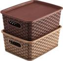HOMESTIC Plastic Plastic 2 Pieces Extra Small Size Solitaire Storage Basket with Lid (Multi) Storage Basket (Pack of 2)