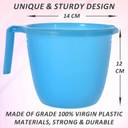Package Contents: 2 Piece Bathroom Mug,Material: Plastic,Dimensions : 14x14x12cm,Multiuses: It can be used for multipurpose like dishwashing, cleaning kitchen, soaking laundry, storing water, utensils in kitchen, foot pedicures and bathing.,Material: This bathroom mugs made of virgin plastic materials, strong & durable.Unique & sturdy design, suitable for daily home use. All our plastic is recyclable and can be reused thus not becoming a burden on the environment