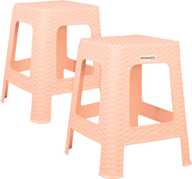 HOMESTIC Plastic Sitting Stool for Indoor Or Outdoor|Home & Garden|Pack of 2|Cream Stool (Yellow, Pre-assembled)