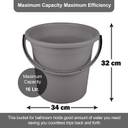HOMESTIC Plastic Strong Bucket for Bathroom for Bathing|18 LTR|Gray 18 L Plastic Bucket (Grey)