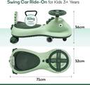 Push car is designed with a unique twist-and-go mechanism, allowing kids to glide effortlessly. The intuitive steering ensures easy handling for young riders, making it the perfect toy for indoor and outdoor fun.Crafted from high-quality, scratch-free PU material, this swing car is built to withstand everyday play. The robust design ensures safety, with a weight capacity to support children around 80 kgs, making it a long-lasting companion for growing kids. The vibrant and ergonomic design appeals to both boys and girls aged 3 to 8 years. Its modern aesthetics, combined with playful colors, make it a favorite among kids and a stylish addition to any play area or home. The swing car comes pre assemble, allowing parents to help kids to start riding without delay. With no force or no battery required , the car can turn 360 degree ,helps your child to focus and learn to balance. Ideal for birthdays and special occasions, this vehicle keeps kids entertained and active while encouraging imaginative play.