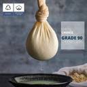 Ensuring safety, the strainer cloth is made of organic cotton. The cloth is unbleached and BPA-free, which ensures that no harmful chemicals will seep into the food. The grade 90 fabric with a high thread count ensures that the cloth can survive regular use in the kitchen and does not tear easily. It is additionally lint-free which ensures that there will be no lint left in the paneer or other dishes you prepare using the cloth.
