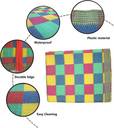 Hometail Light Weight Indoor Outdoor Reversible Area Mats, Plastic Straw Rug, Fade Resistant Area Rug, Large Floor Mat This Indoor outdoor Plastic Chatai for House/Home hall, bedroom, terrace, balcony, beach, camping, Picnic. The durable polypropylene weave is weather-proof and mold- and mildew-resistant. The Handy Mat features fabric edging to help reinforce the blanket and prevent fraying. Polypropylene weave resists stains and is easily cleaned with soap and water. Floor Mats are a part of everyday life being used to sit on and sleep on. Hometail Plastic Mat with carpet style layout you'll fall in love which will instantly change the appearance of your room and give your floor a royal and rich look. Hometail Multipurpose Mats are Washable, stain-resistant, lightweight, Durable, Long-lasting with attractive colors & design. Hometail Multipurpose Mats are widely used as a replacement for regular type conventional Rugs/mats and are used for Indoor and Outdoor areas. Best known as Plastic Floor Mats, Plastic Mats, Plastic Rugs (Chatai) for Home, Living Room, Bedroom, Kids floor, Garden further used for social gathering, picnics, beaches, Yoga, as well as for decoration. REVERSIBLE MATS With a timeless design, this plastic patio rug is elegant as it is functional, use it on your patio with outdoor furniture and accessories to show off your personal style. UV STABILIZATION UV coated to protect against fading and other sun damage. Note: Colors are shown in the picture due to lighting. SIZES: 4 x 6, 6 x 6, 6 x 9 Feet, three size are perfect for any indoor/outdoor decoration. Product Features: •Durable mildew resistant material •Folds down into a compact, portable carry size. •Idea for camping, beach, picnics, house hall, terrace, balcony •Size: 4*6, 6*6, & 6*9 Feet •Color: Multicolor EASY CLEANING & PORTABLE For a quick clean simply sweep away dirt or spray with water and air it dry. Reversible outdoor rugs can be folded into a compact size for easy storage Made by Indian for Indians