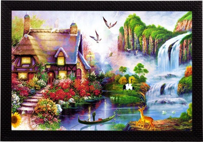 homicraft 4 Steps Tabletop Waterfall Fountain, LED Lights, Indoor Zen Home Decor Decorative Showpiece - 40 cm (Resin, Peach)
