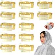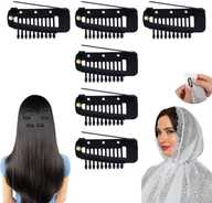 HONEY ACCESSORIES 6Pcs Chunni Dupatta Clips with Safety Pin, 10-Teeth Strong Chunni Grip Hair Clip Hair Pin (Black)