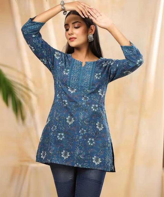 Honeycrafts Women Printed Straight Kurta (Blue)