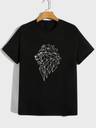 A Printed Round Neck Polycotton Blend Black T-Shirt" refers to a men's T-shirt that is made from a blend of polyester and cotton fibers. This blend is known as "polycotton," combining the qualities of both materials to create a fabric that's comfortable, breathable, and durable. The term "round neck" indicates that the T-shirt has a circular neckline, which is a common style for T-shirts.