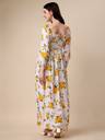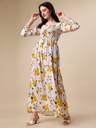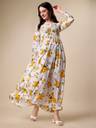 Honky Tonky Women Fit and Flare White, Yellow, Dark Green Maxi/Full Length Dress