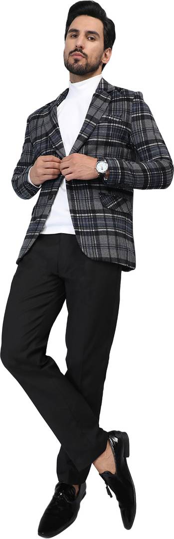 Acrylic Polyester Checkered Coat For Men