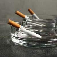 HOOLI High-Cigarette Glass Ashtray Clear Glass Ashtray (Pack of 1)