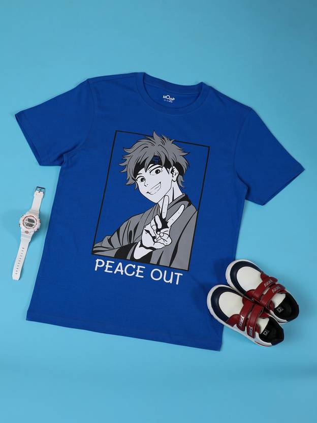 Hoop Boys Printed Pure Cotton Regular T Shirt (Blue, Pack of 1)