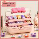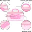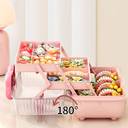 HoopVool Kids Hair Accessories And Jewelry Storage Box 180 Degree Openable, 3 Layer Storage Design Vanity Box (Pink)
