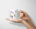 This coffee mug is white and has a 330ml capacity. It is made of ceramic and has a sturdy, well-balanced design. It can be used for hot or cold beverages and is dishwasher safe.