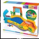 Give your kids a summer of fun with the Intex Dinosaur Water Slide PlayCenter. This inflatable Water Slide Play Center is made of PVC vinyl and a water sprayer. It also features an inflatable waterfall and a hippo ball game. The Dinosaur Play Center includes an inflatable slide with landing pad for hours of fun for your kids and their friends. It sets up quickly, needing only two minutes to inflate.