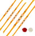 The use of the mauli thread in this rakhi combination has significant spiritual significance. Traditions have high regard for the vivid crimson Mauli thread.The fortunate Rudraksha beads are arranged around the Trishul, a sign of Lord Shiva's might and protection.Roli and Chawal are symbols of traditional values and blessings. Additionally, the mauli thread gives an eye-catching look to the rakhi and makes sure that the rakhi reflects the feelings woven in selecting the rakhi for your dear brother.