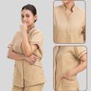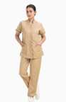 Hospriqs FIO Nurse Uniform With Normal Length Half Sleeves Top With Pockets And Pant - S Shirt, Pant Hospital Scrub (Beige S)