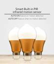 1. SMART MOTION SENSOR: The motion detector works like a small electronic eyes that detect infrared waves—heat waves that radiate from moving objects. When the detector senses an object moving across its field of view—especially warmer objects such as people, animals and cars—it electronically turns on the lights. The light bulb stays on 30 Second,then the detector automatically shuts the light off unless it continues to sense movement. 2.DUSK TO DAWN: Built-in a photocell sensor, deactivates the motion sensing light bulb during the daylight hours to save energy. 3. EXCELLENT FEATURES: Super bright, gives off 500 lumen, 85% energy saving, 5W LED replace 60W halogen bulb. 4.Larger Detection Range: Make sure the sensor is pointing down within proper distance and angle. To increase the motion activation light bulb's sensitivity, you can adjust the Angle and Height of the bulb installation. The higher you hang the motion sensor light bulb, the larger detection range it achieves as the highest could be 13 feet vertically. The detection distance is around 8-10 FT in the dark by given the certain installing height and other factors. 5. WHERE TO PUT THEM? :For best effectiveness, position a motion sensor light to cover the walks leading to your front and back doors and the driveway, If improved security is a priority, position the motion sensored lights to cover all the approaches to your house, including fence gates, the patio door, the darker areas of your yard, and around trees and bushes. backyard, porch, patio, garage, basement, hospital, office, hotel, closet, balcony, gate, etc.