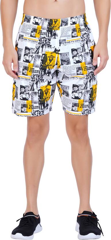Hotfits Men wardrobe team designed this stylish graphic printed shorts with 100% softfeel fabric with two side pockets. Inner size rope give better fitting. Elegant your look with pair of any light color t-shirt. best use for regular workout, running, yoga.