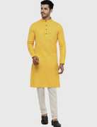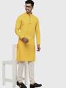 Men Solid Cotton Blend Straight Kurta (Yellow)