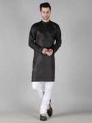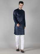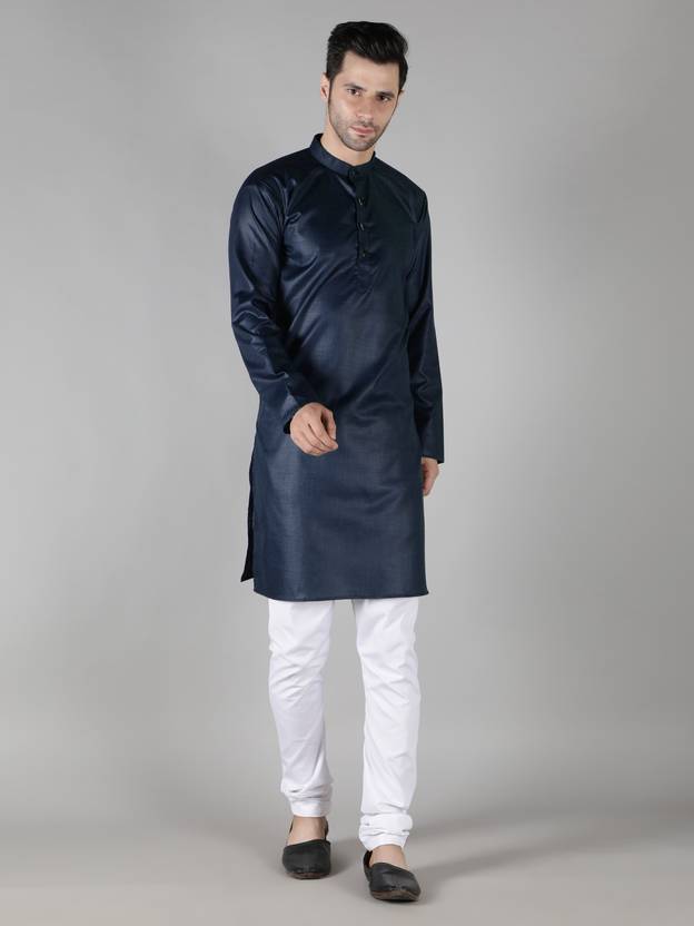 Men Solid Cotton Blend Straight Kurta (Blue)