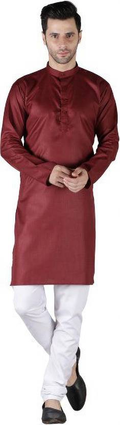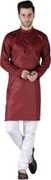 HotGown Men Solid Straight Kurta (Maroon)