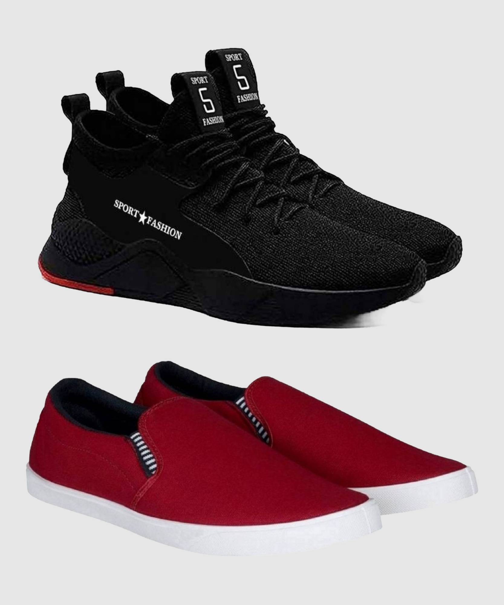 HOTSTYLE 2 Pair Combo Sneakers For Men (Maroon, Black , 10)