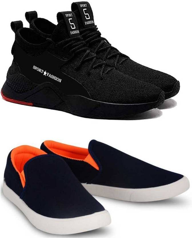 HOTSTYLE Sneakers For Men (Orange, Black , 6)
