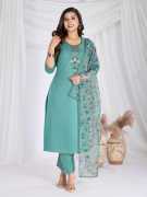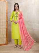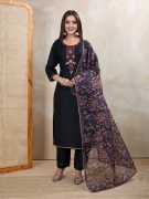 HOUSE OF COMMON Embroidered Kurta, Churidar & Dupatta Set