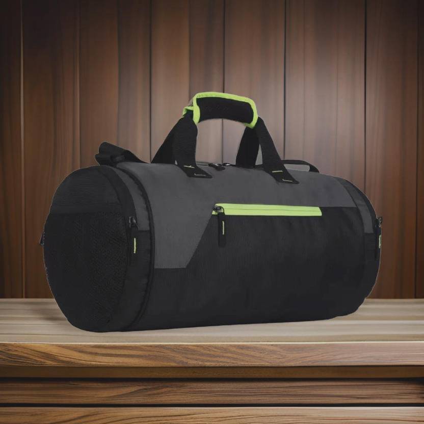 Material : Outer Material - Premium light weight Fabric, Inner Material – Soft Polyester, :Capacity : 23 Liters, 1 Large Double Zip Closure Compartment, 1 external Mesh Organizer Pocket for the earphones, ID card, Sanitizer, House keys, Fitness Band. 1 Main Compartment for all your Gym Clothes, Gym belt, towel, Gym gloves, shaker, shoe Pair etc., Design : Design with Premium Leatherette Heavy Quality Long Adjustable Handle and Double side easy carry handle., Manufacturing : This Product is made in INDIA By “The INDIAN KARIGAR “ and pass though the many quality checks and tests., Suitable : jairaj Gym Bag / Duffel bag is suitable for gym, Day trip casual round bag, travel bag is suitable for men women boys and Girls. This Bag is trending For Gift Purpose
