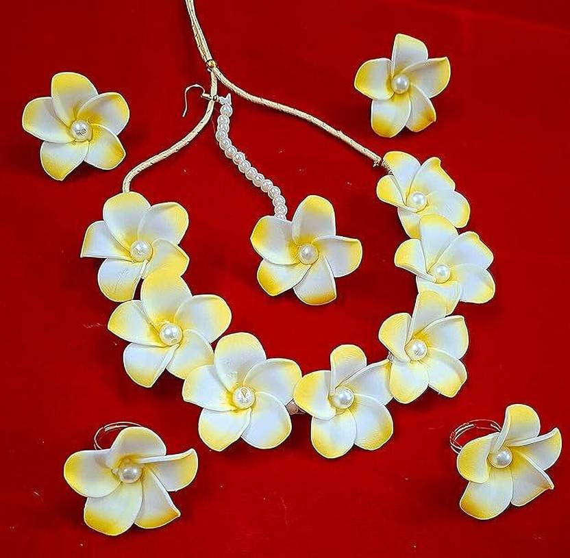 Artificial Flower Jewellery set - Soft and Easy to handle -Wearable in Wedding / Party / Baby Shower/ Bridal / Haldi / Mehndi /Baby shower Festive Season.