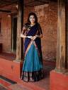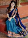 Upgrade your ethnic look with this premium unstitched choli fabric, crafted for comfort and style. Made from soft silk blend fabric, this blouse piece features a rich navy blue base with traditional woven golden borders, giving it a classy and elegant finish.