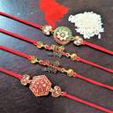 Rakhi symbolizes the spirit of friendship and the heart achingly beautiful relationship between a Brother and sister.This Rakhi being traditionally designed and handcrafted, fine design, pattern and color tone may vary slightly from that shown in the image. House of Crafts Rakhis made with auspicious material like Mauli and woven with Rudraksh, moti, seap, kowdi, kundan, Zardosi, etc. Our Beautiful collection have handcrafted Rakhis made from Silver, natural Sandalwood beads, American diamonds, Pure natural Rudraksh, enamel work, golden beads, cut glass and crystals, Mauli, Zardosi, Zari and resham work, beautiful kundans, peacock feathers, precious and semi precious stones with fresh water pearls in many shades.