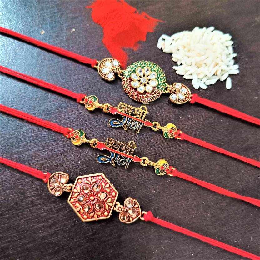 Pack 4 radhe Rakhi For Brother Men Kids Rakhi Gift Bhaiya Bhabhi Joda Rakhi
