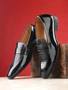 Men black solid formal slip ons loafers shoes