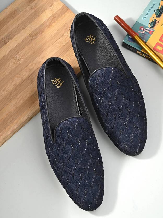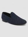 House of Pataudi Men's Blue Embroidered Casual Slip On Loafers