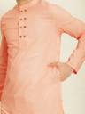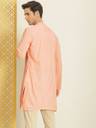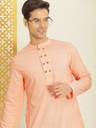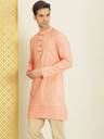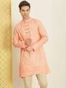 House of Pataudi Men Striped Polyester Straight Kurta (Pink)