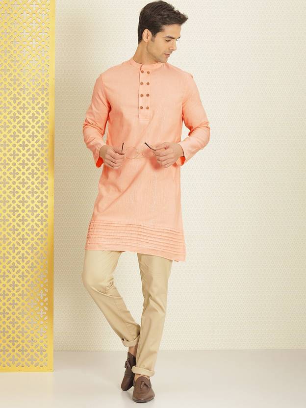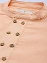 About the BrandEverything created at the House of Pataudi is inspired by the modern Indian sensibility. We believe in a seamless weave of the past with the present. Our carefully crafted pieces give expression to a refined and effortless way of life.About the CollectionRozana:nbsp;Everyday wear with a contemporary ethnic touch. Easy, contemporary silhouettes with a hint of detailing to transcend your daily wardrobe essentials. The collection celebrates a mix of prints and solids with attention to details inspired from the regal architecture of the PalaceColour: peach-colouredStripedMandarin collarLong, regular sleevesStraight shape with regular styleZari detailAbove knee with straight hemMachine weave regular polyester.