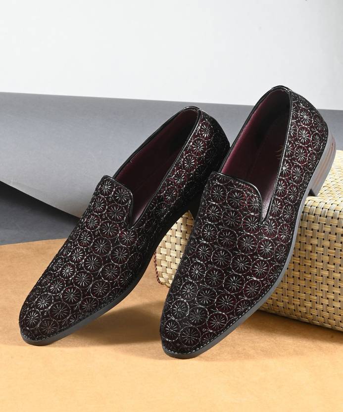 Indulge in luxury with House of Pataudi's Men's Embroidery Velvet Ethnic Slip Ons Premium Loafers. Crafted for the connoisseur of style, these loafers showcase exquisite embroidery on plush velvet, elevating your ethnic ensemble to new heights. Slip into comfort and opulence as you make a statement at any festive occasion. Immerse yourself in the artistry of these premium loafers, a perfect fusion of tradition and sophistication.