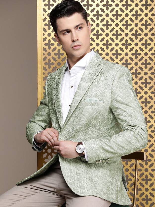 House of Pataudi Self Design Single Breasted Party Men Blazer (Green)