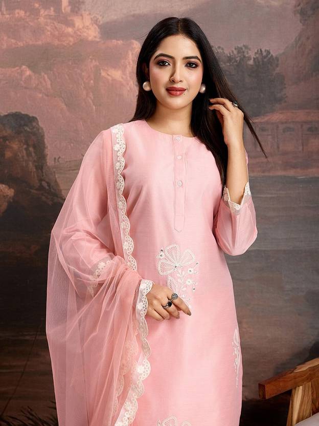 Kurta Fabric:-Chanderi Cotton, Bottom Fabric:-Silk Crepe, Dupatta Fabric:-Net